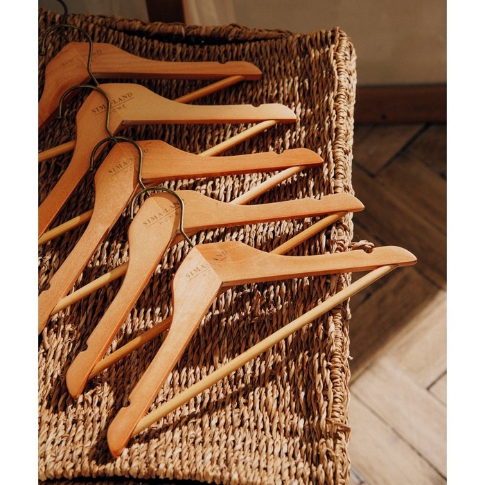 Плечики - вешалки для одежды LaDо́m Bois, 44,5×1,2×23 см, 3 шт, с перекладиной, широкие плечики, деревянная сорт А