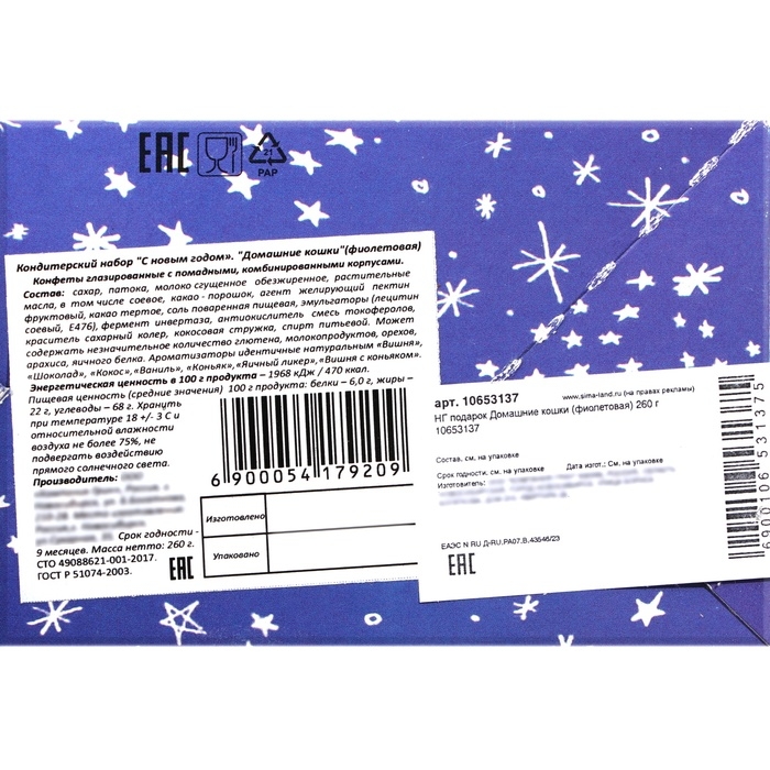 Новый год. Новогодний подарок "Домашние кошки", 260 г