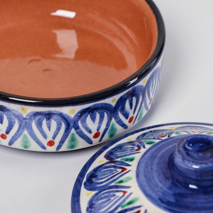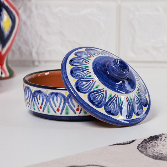 Сахарница Риштанская Керамика "Цветы", 250 мл, синяя