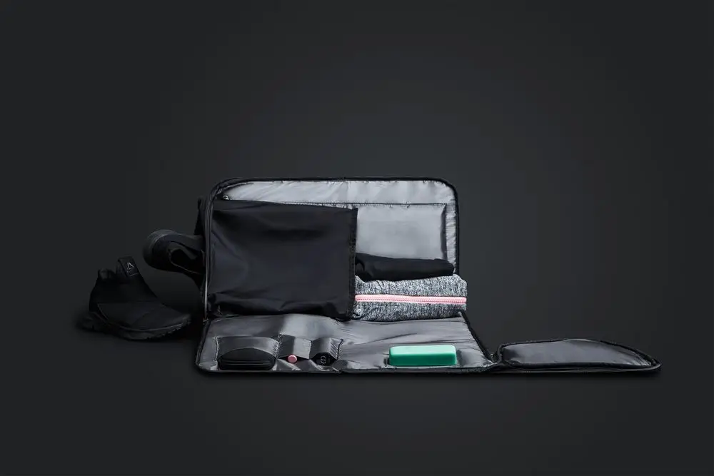 Благодаря единой молнии, идущей по всей сумке, она складывается в пришитый чехол, поэтому не займет много места в багаже или в шкафу.