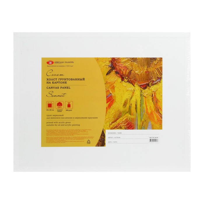 Холст на картоне ЗХК "Сонет" хлопок 100%, 40 х 50 см, толщина 3 мм, акриловый грунт, мелкозернистый, 280 г/м2