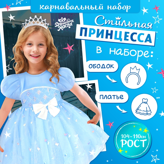 Карнавальный набор «Стильная принцесса»: ободок, платье голубое, рост 104-110 см