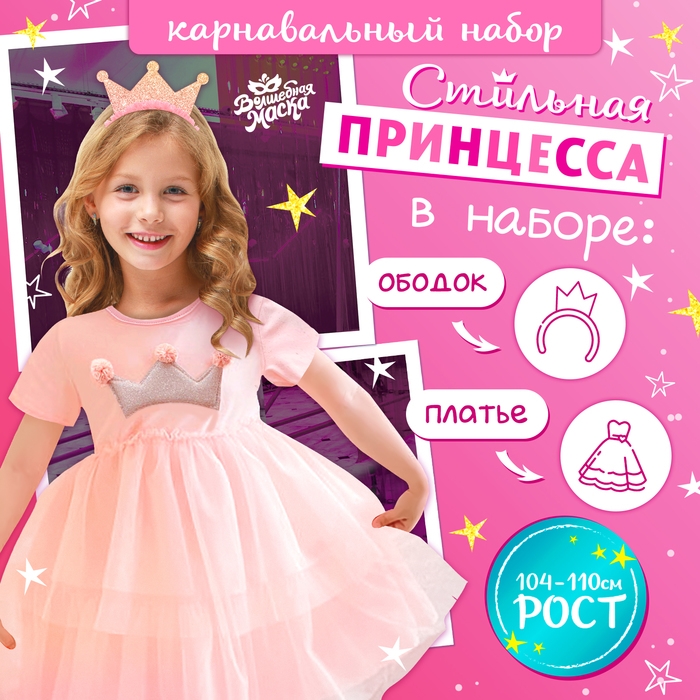 Карнавальный набор «Стильная принцесса»: ободок, платье розовое с короной, рост 104-110 см