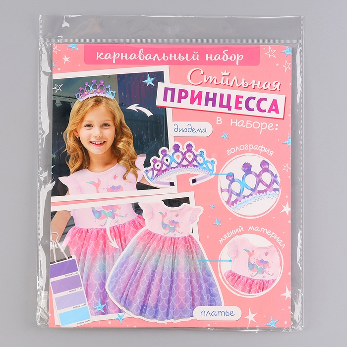 Карнавальный набор «Стильная принцесса», ободок, платье с русалкой, рост 104-110 см
