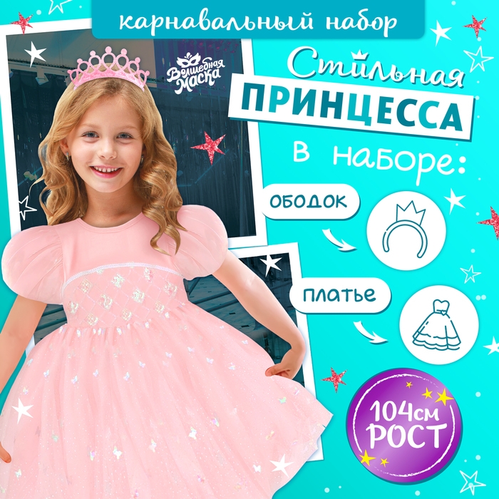 Карнавальный набор «Стильная принцесса»: ободок, платье розовое, рост 104 см