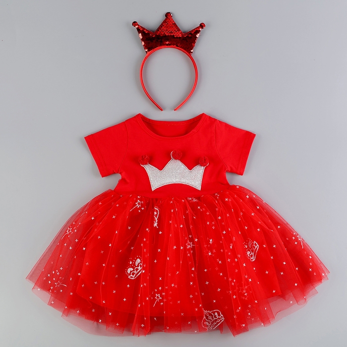 Карнавальный набор «Стильная принцесса»: ободок, платье красное с короной, рост 110 см