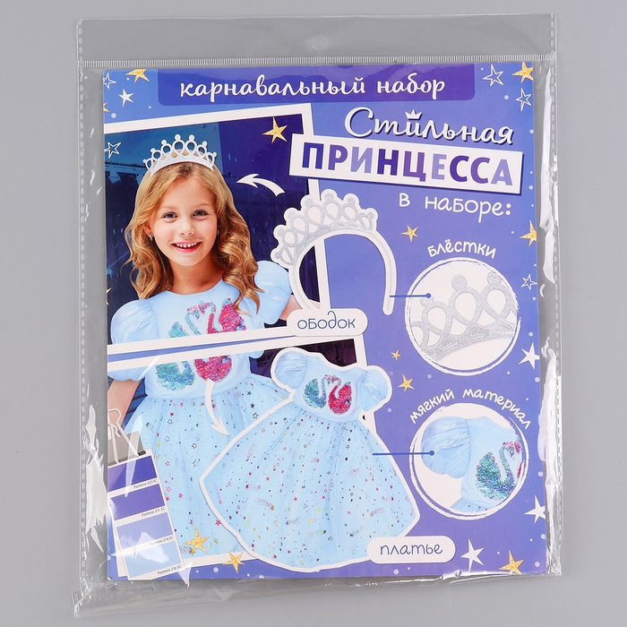 Карнавальный набор «Стильная принцесса»: ободок, платье голубое с лебедями, рост 104 см