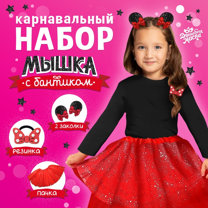 Карнавальный набор "Мышка с бантиком" поможет создать яркий и запоминающийся образ для любой праздничной вечеринки!