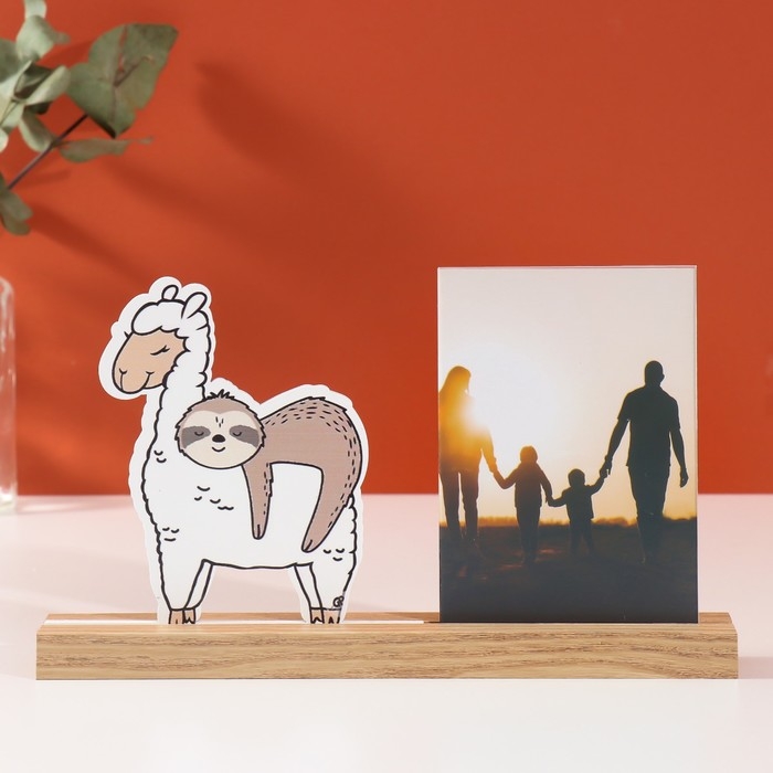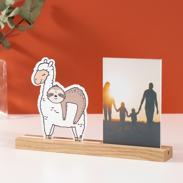 Фоторамка дерево, акрил 10х15 см "Лама с ленивцем" 4х27,3х14 см
