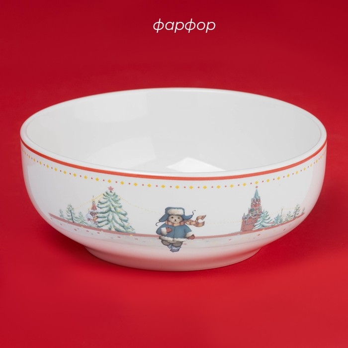 Салатник новогодний Доляна «Московский мишка», 580 мл, 15,5×6 см, фарфор, цвет белый