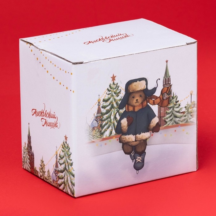Новогодняя кружка для чая Доляна «Московский мишка», 330 мл, 12×8,5×11 см, фарфор, цвет белый
