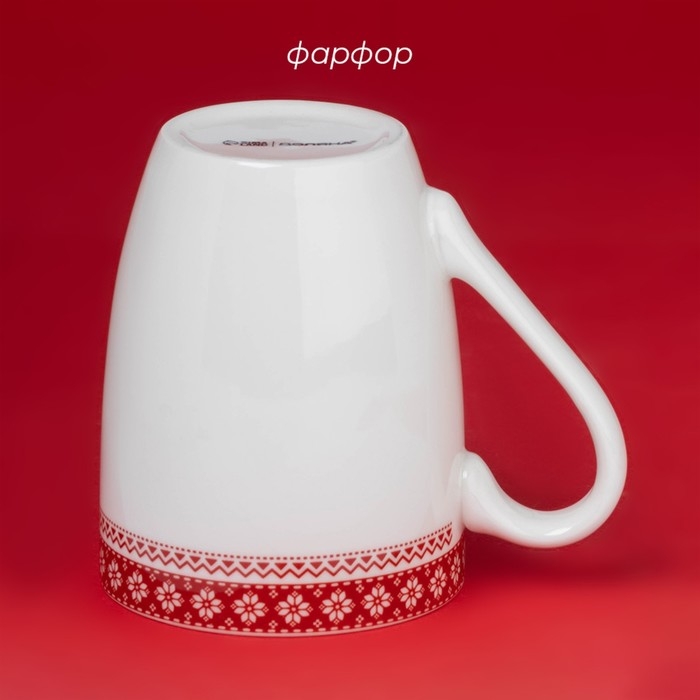 Новогодняя кружка для чая Доляна «Финский лес», 330 мл, 12×8,5×11 см, фарфор, цвет белый