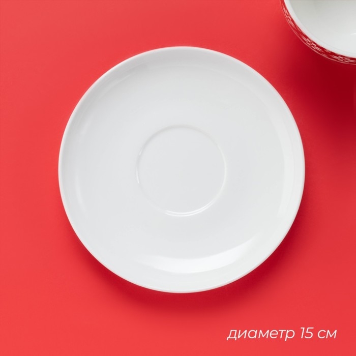 Чайная пара фарфоровая Magistro Argos, 2 предмета: чашка 220 мл, блюдце d=15 см, цвет белый