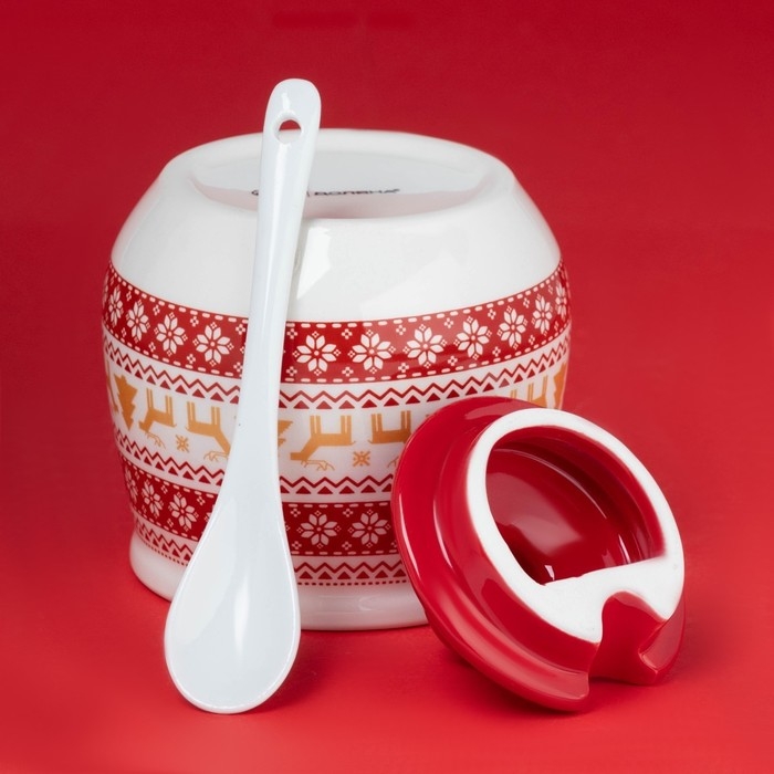 Сахарница новогодняя Доляна «Финский лес», 350 мл, керамика, цвет белый