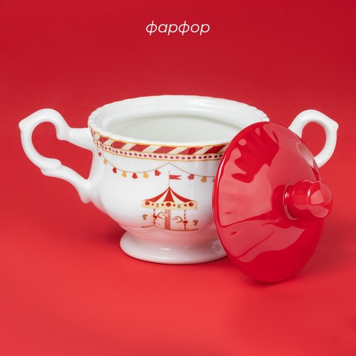 Сахарница новогодняя Доляна «Парк аттракционов», 400 мл, фарфор, цвет белый