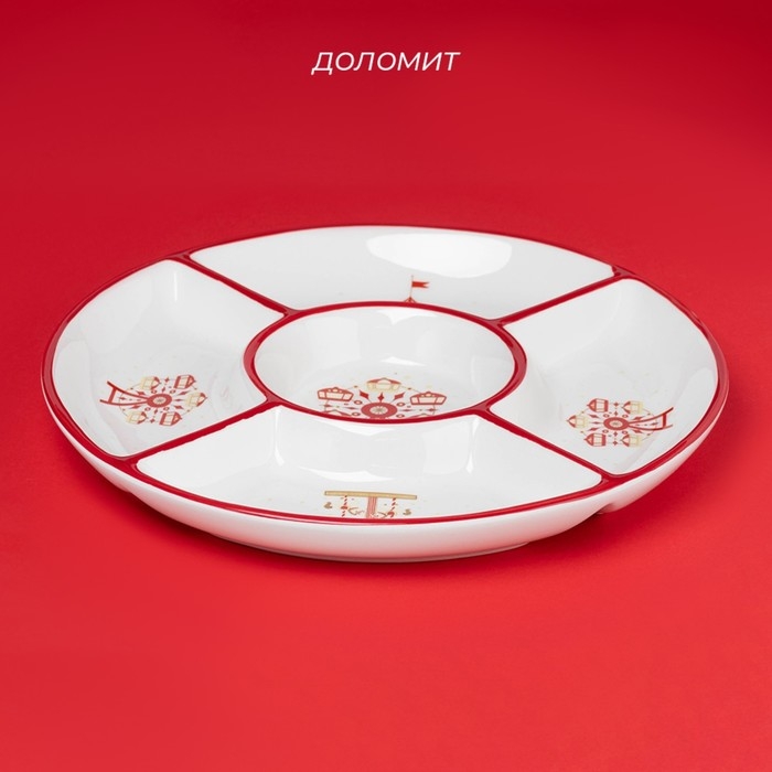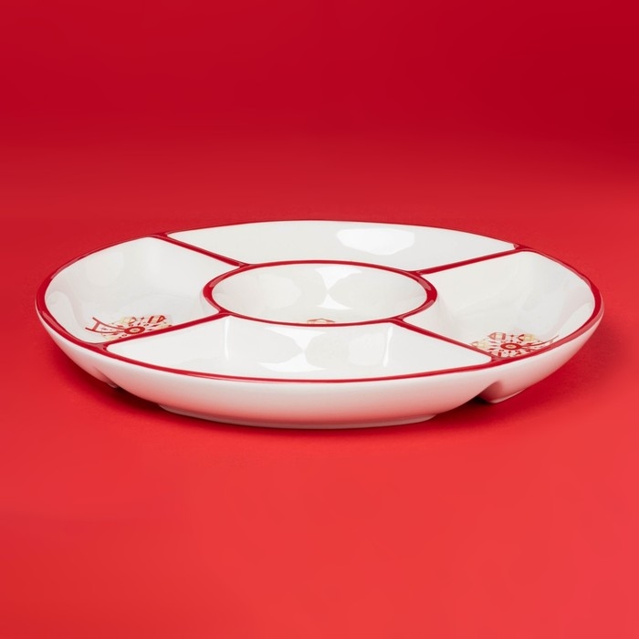 Менажница новогодняя Доляна «Парк аттракционов», 5 ячеек, 25,5×3,1 см, керамика, цвет белый