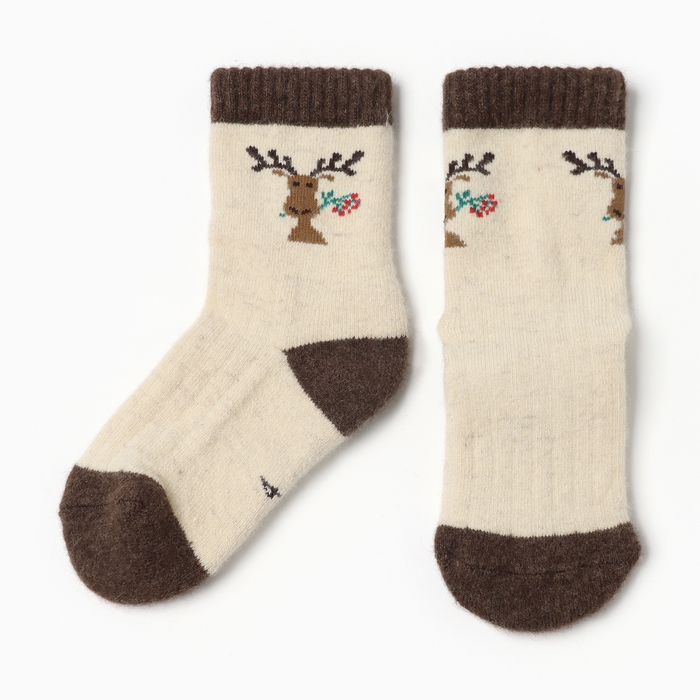 Носки детские из монгольской шерсти "Олень", цвет шоколадный, размер 12-14