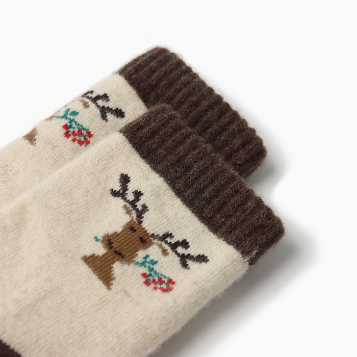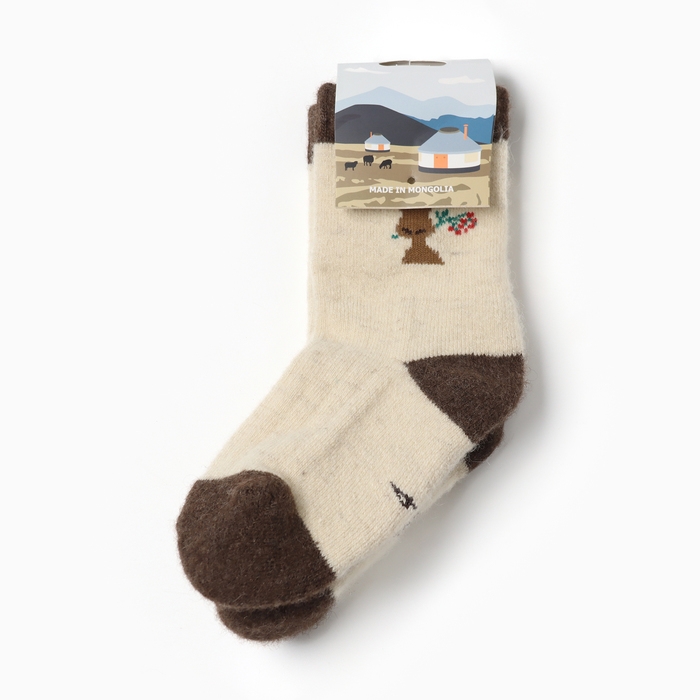Носки детские из монгольской шерсти "Олень", цвет шоколадный,, размер 18-20
