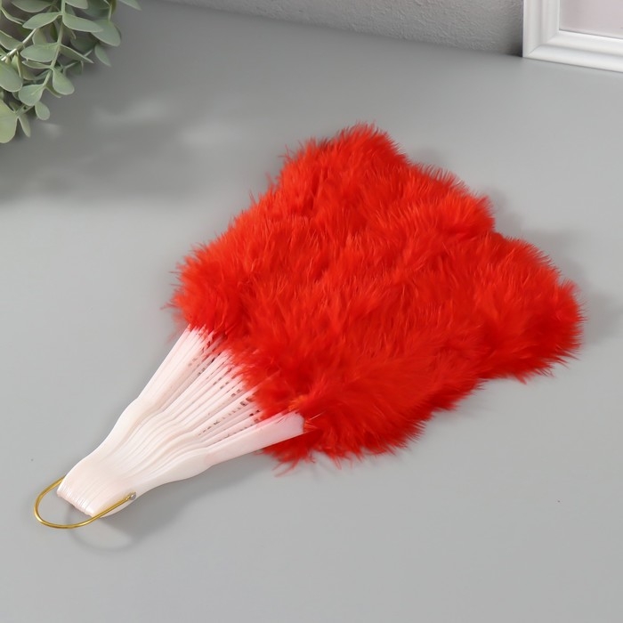 Веер пластик, перо "Красный" h=26 см 25 лопастей 3х50х26 см