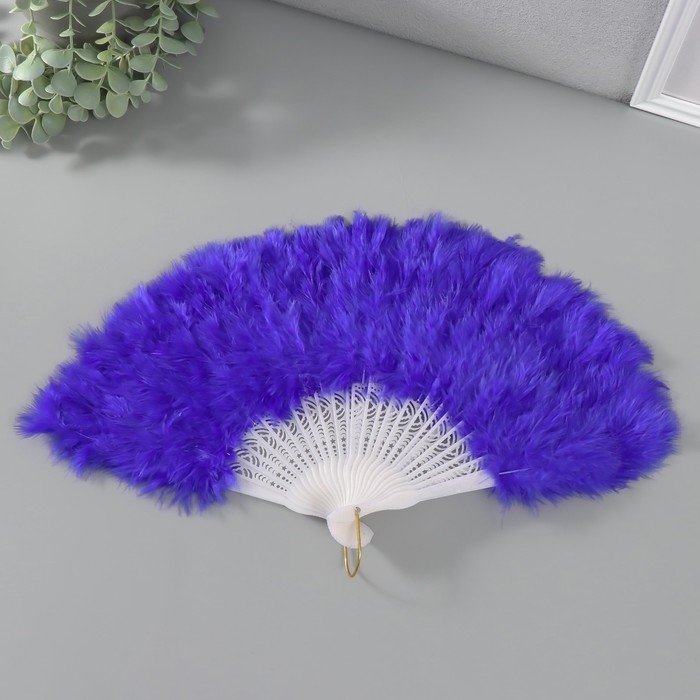 Веер пластик, перо "Ярко-синий" h=26 см 25 лопастей 3х50х26 см