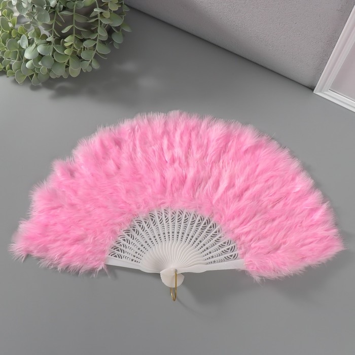 Веер пластик, перо "Розовый" h=26 см 25 лопастей 3х50х26 см