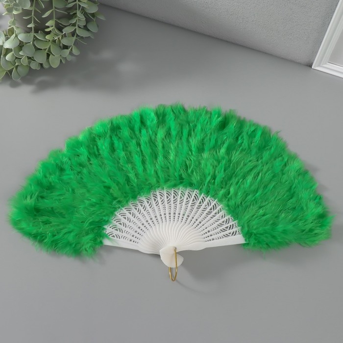 Веер пластик, перо "Зелёный" h=26 см 25 лопастей 3х50х26 см