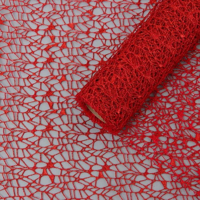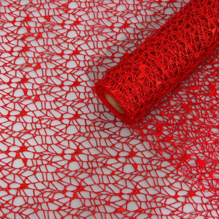 Упаковка для цветов "Паутинка с глиттером" красная, 48 см х 4,5 м