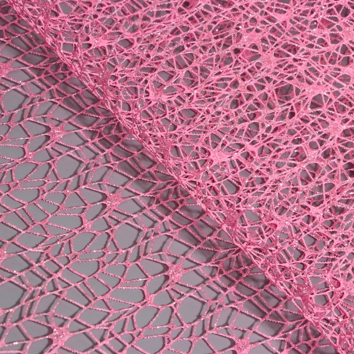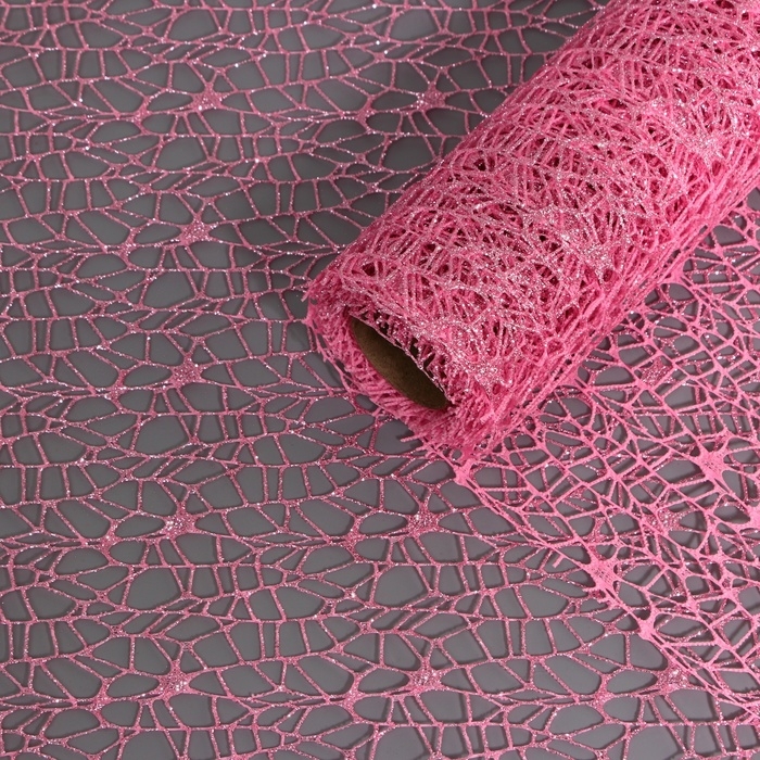 Упаковка для цветов "Паутинка с глиттером" розовая, 48 см х 4,5 м