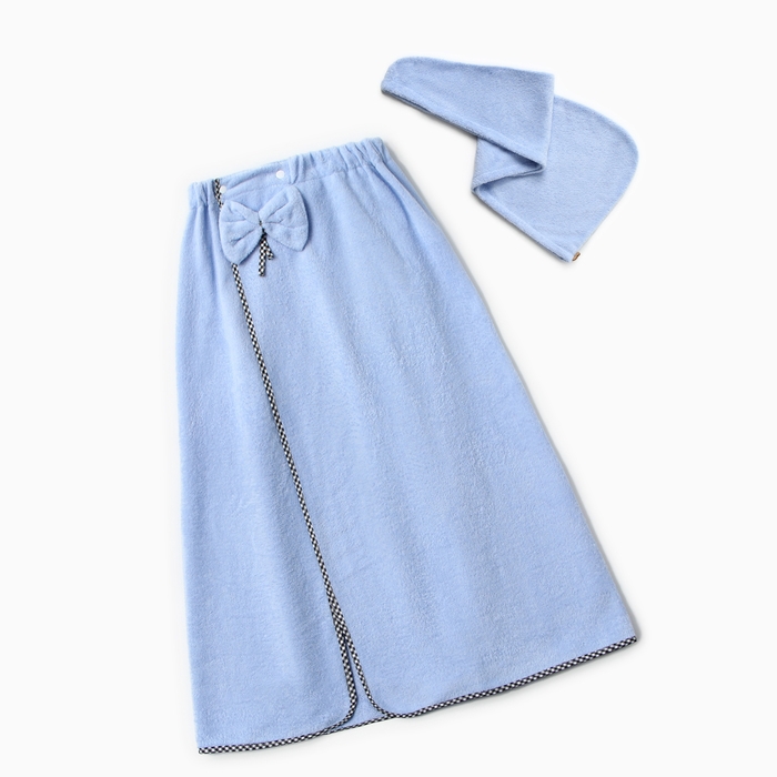 Набор для бани и ванной Этель "Бантик", цв. голубой: полотенце-парео 75*120 см + чалма