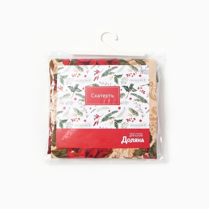 Скатерть Доляна "Новогодние украшения" d145см, 100% п/э, 140гр/м2