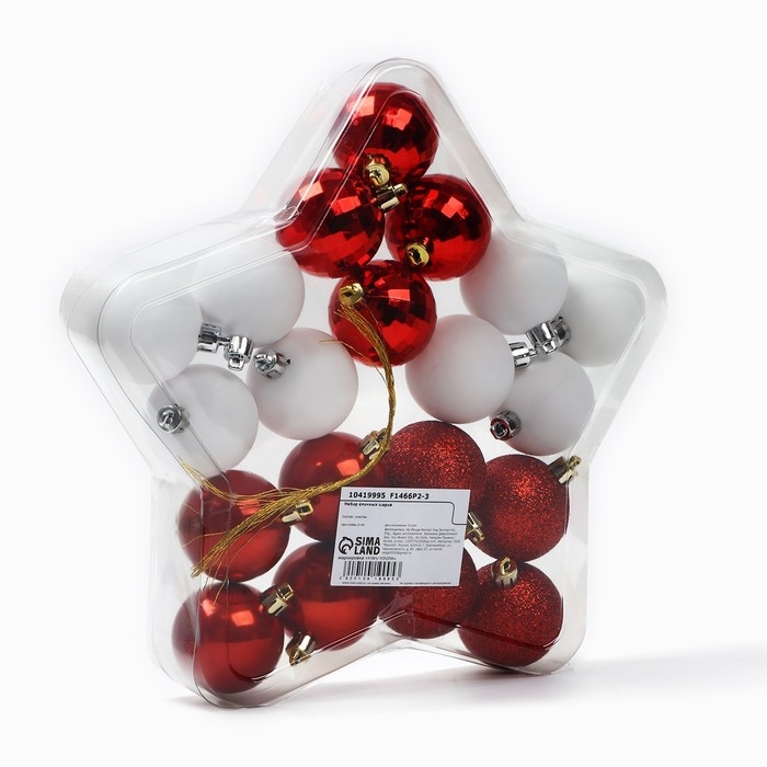 Ёлочные шары новогодние, на Новый год, d=5 см, 20 шт., цвет белые и красные