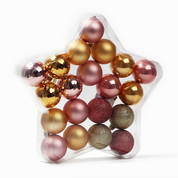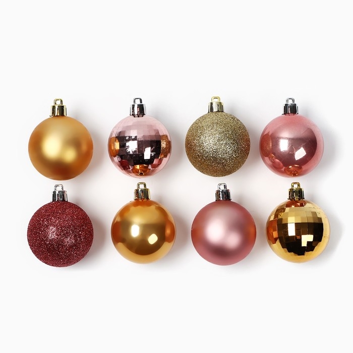 Ёлочные шары новогодние, на Новый год, d=5 см, 20 шт., цвет золотой и розовые