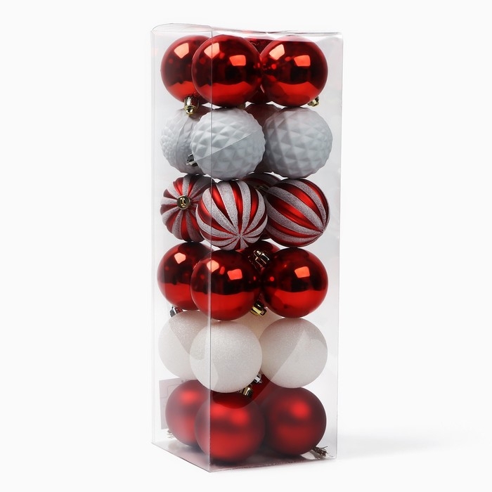 Ёлочные шары новогодние, на Новый год, d=6 см, 24 шт., цвет белый и бордовый