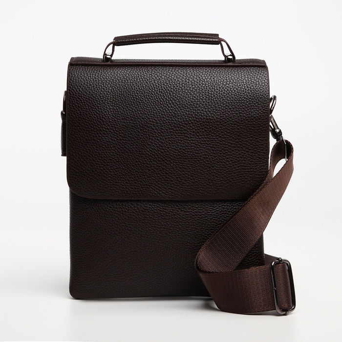 Сумка мужская на клапане TEXTURA, наружный карман, цвет коричневый