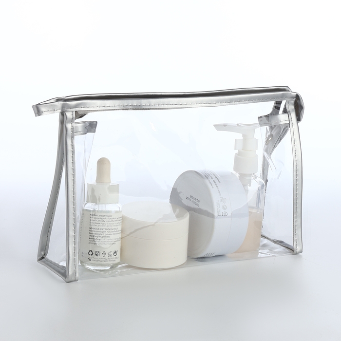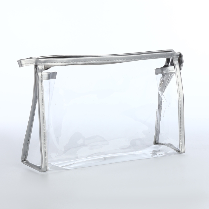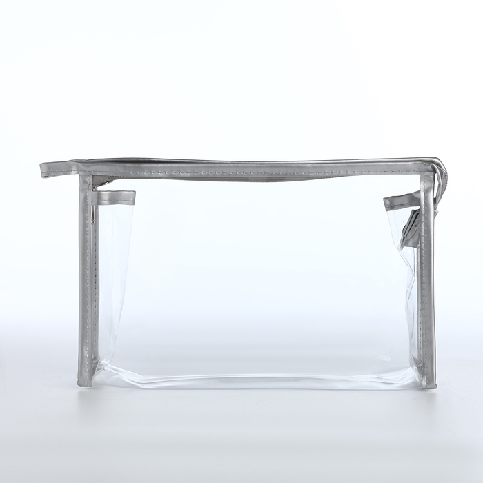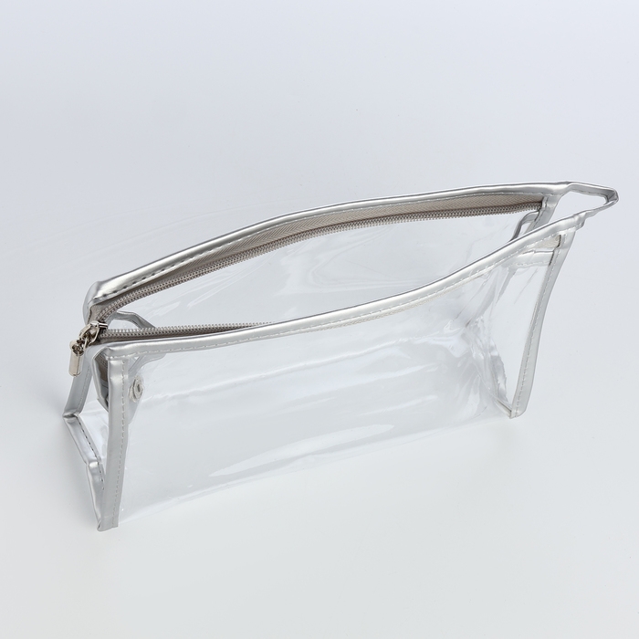 Набор косметичек 2 в 1 на молнии, цвет серебряный