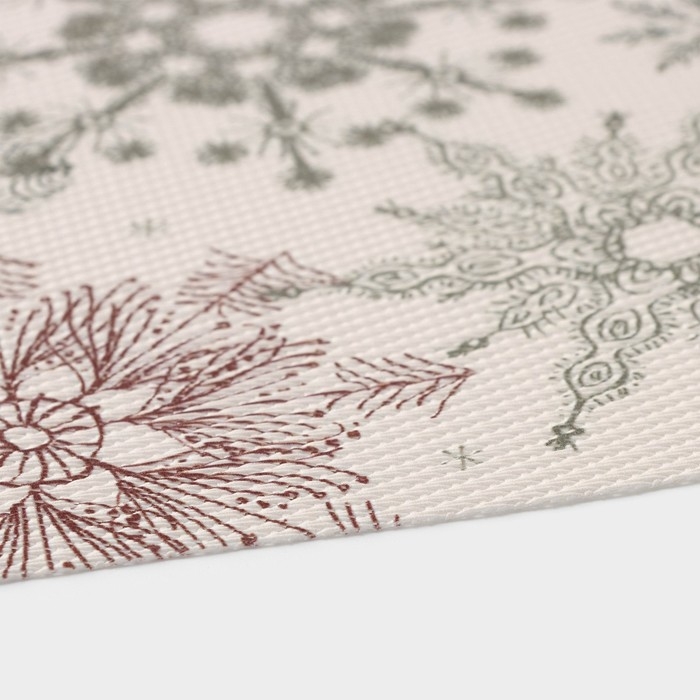 Салфетки выполнены из высококачественного ПВХ, устойчивого к истиранию и влаге, и украшены ярким новогодним дизайном. Благодаря водоотталкивающим свойствам, их можно использовать для сервировки стола и защиты поверхности от пятен и брызг.