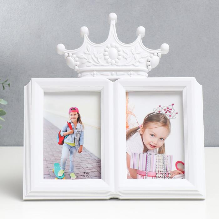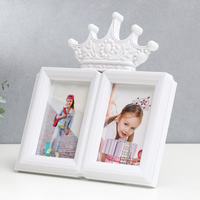 Фоторамка пластик на 2 фото 10х15 см "Корона" белая 30х28 см
