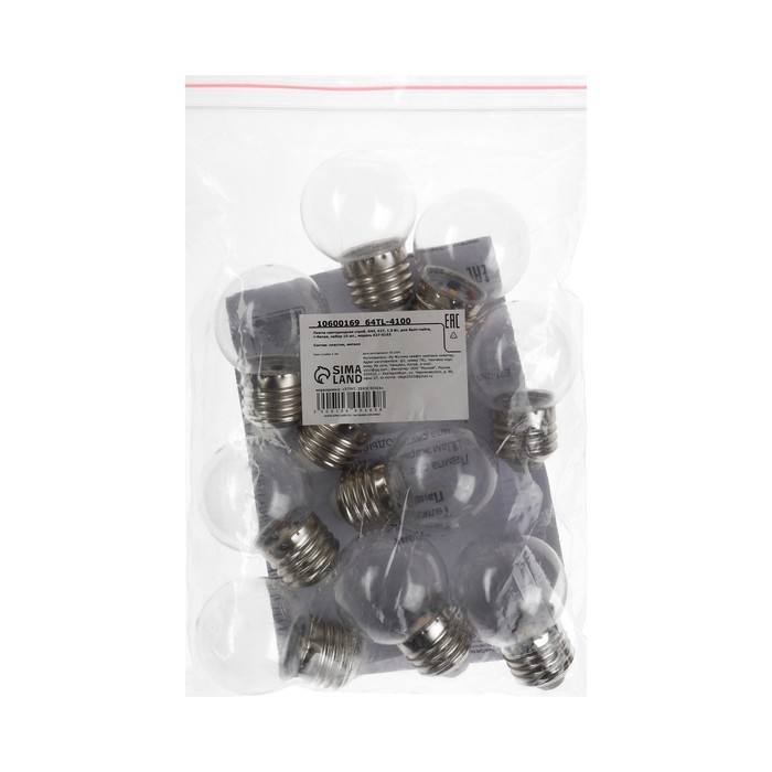 Лампа светодиодная строб, G45, E27, 1.5 Вт, для белт-лайта, т-белая, набор 10 шт.