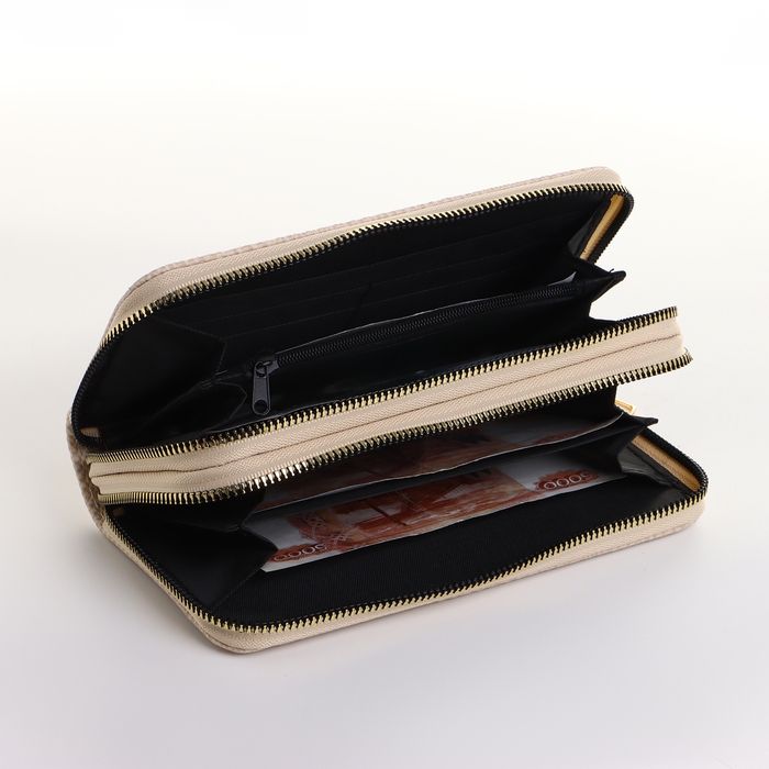 Кошелёк женский на молниях, цвет бежевый