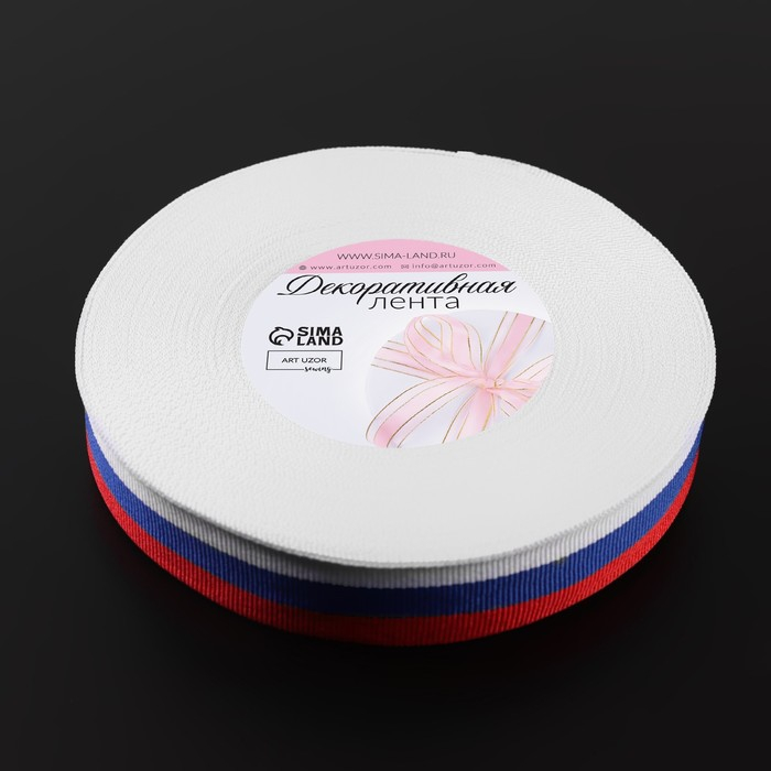 Лента репсовая «Триколор», двусторонняя, 25 мм, 23 ± 1 м