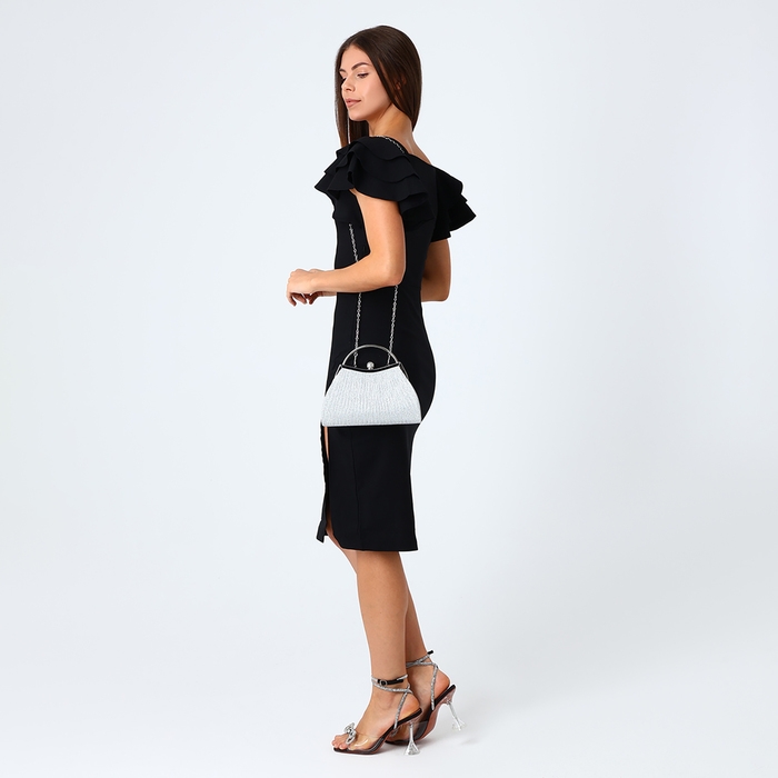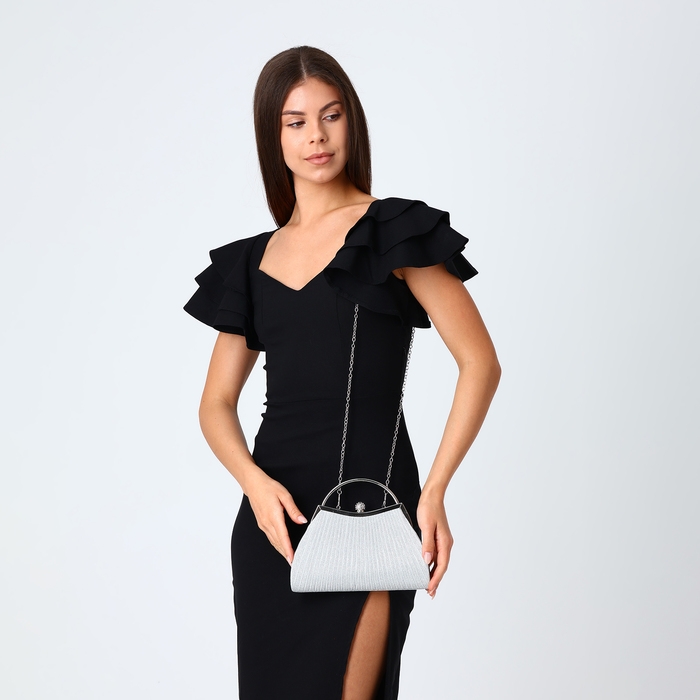 Сумка-клатч на фермуаре, цвет серебряный