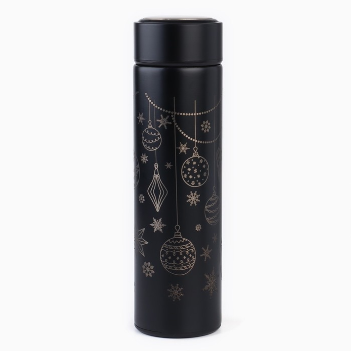 - Стильный дизайн: термос оформлен в современном стиле с новогодним настроением.