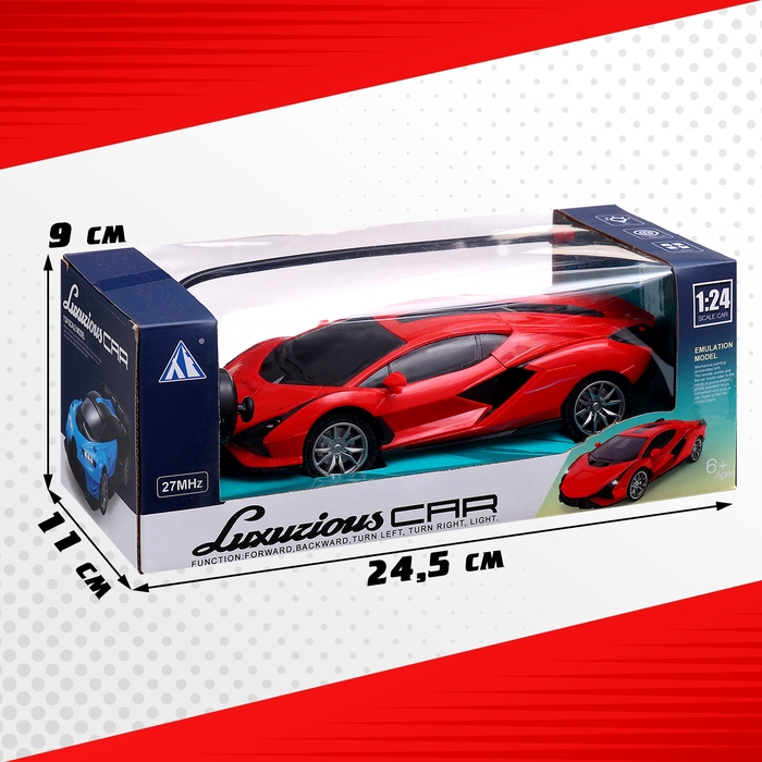 Машина радиоуправляемая «Купе», 1:24, световые эффекты, работает от батареек, цвет красный