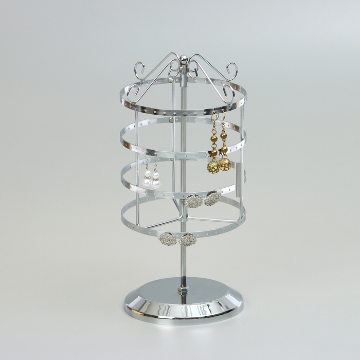 Подставка для украшений «Вертушка»,4 яруса,72 пары, металл, 15×15×34 см, цвет хром