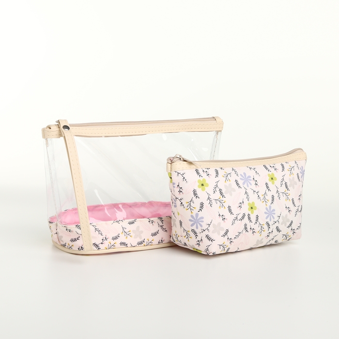 Набор косметичек 2 в 1 на молнии, цвет бежевый