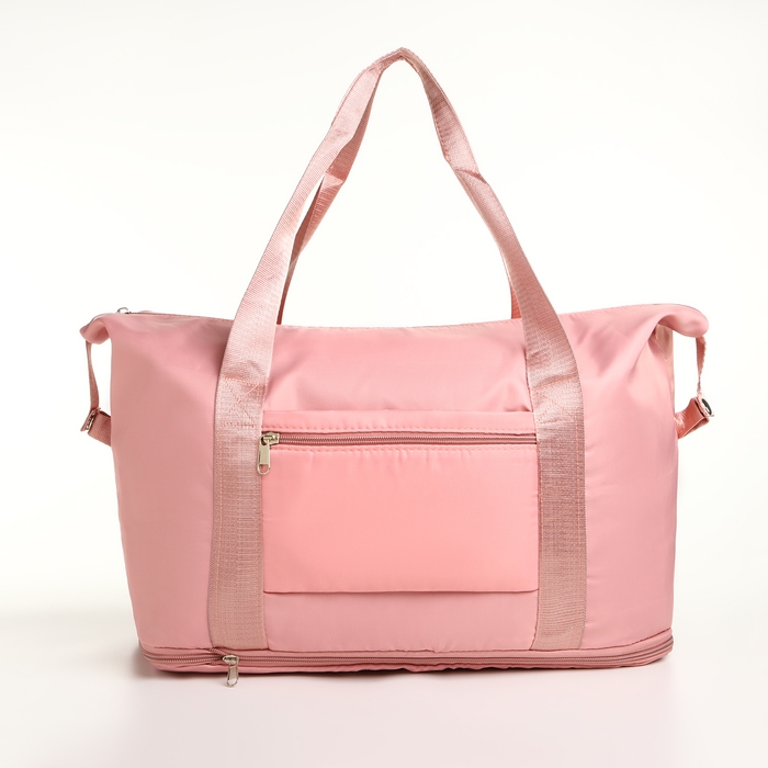 Сумка спортивная на молнии, с увеличением, наружный карман, цвет розовый