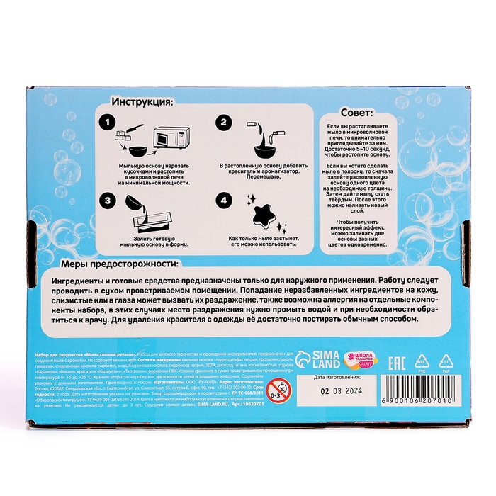 С помощью этого набора вы сможете создать яркое ароматное мыло в домашних условиях. Самое главное, что результат своих трудов можно использовать каждый день.