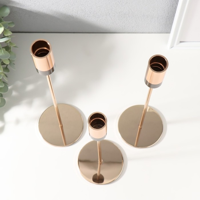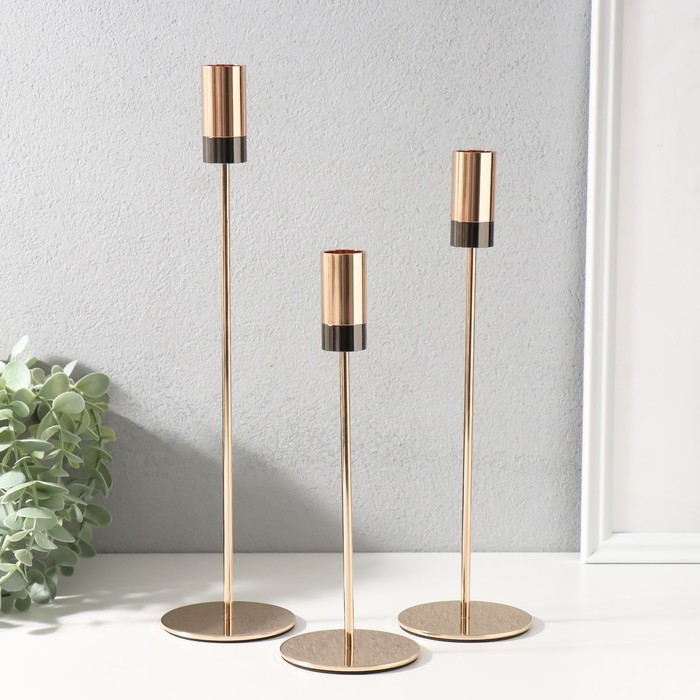 Подсвечник металл "Цилиндр с чёрным низом" набор 3 шт золото h=33,5; 28,5; 23,5 см