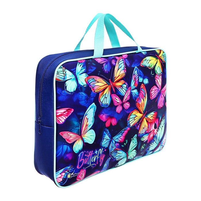 Папка с ручками текстильная А4, 350 х 265 x 75 мм, ПМД 4-20 "Неон бабочки"