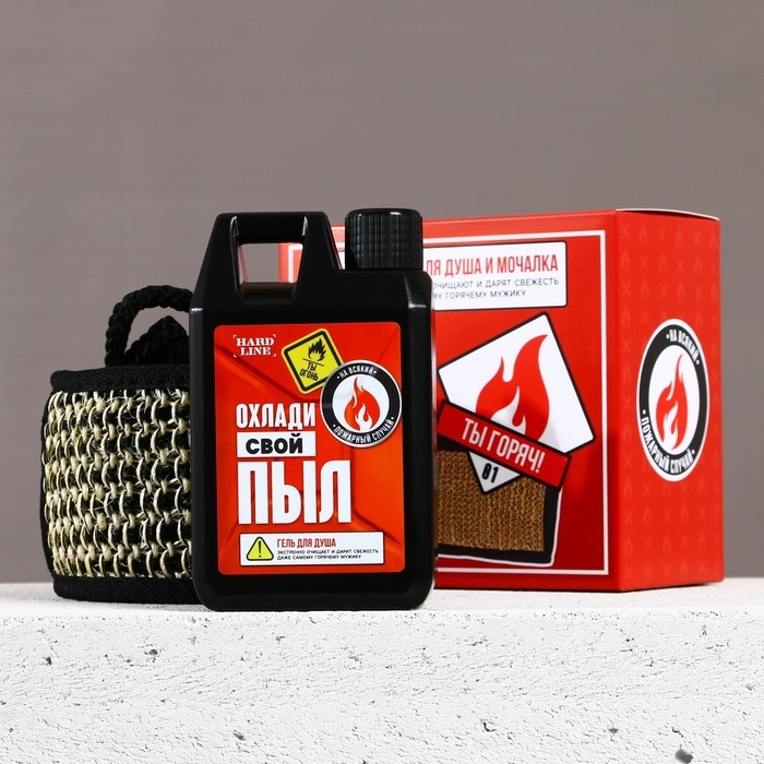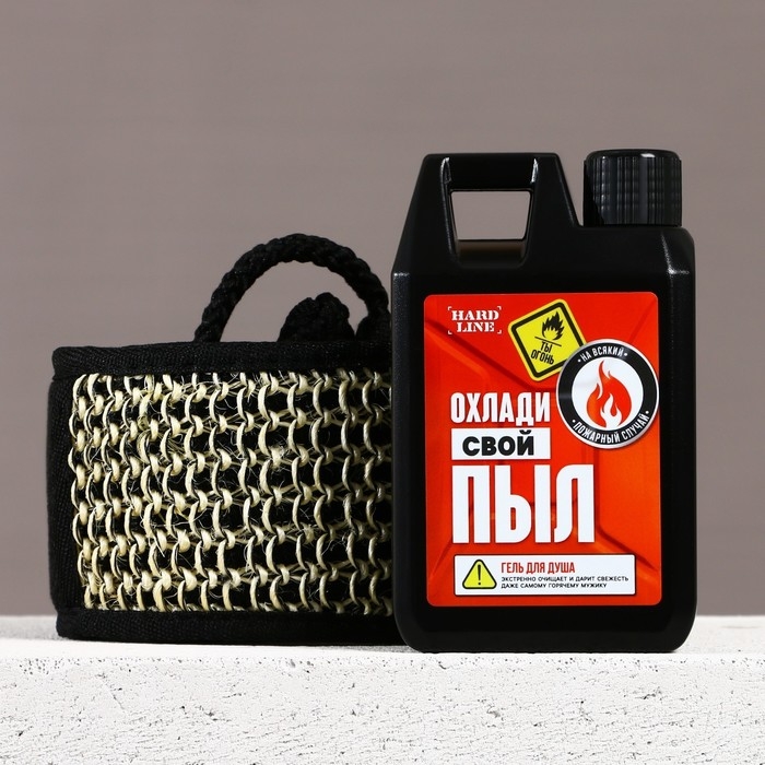 Подарочный набор косметики «Охлади свой пыл», гель для душа во флаконе канистры 300 мл и мочалка для тела, аромат мужского парфюма, HARD LINE